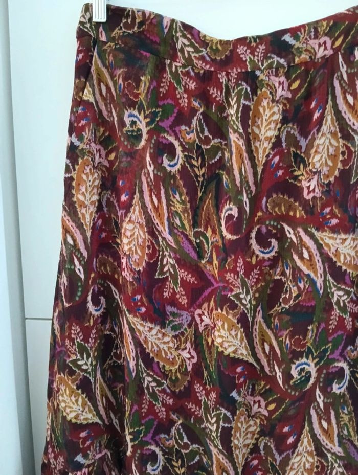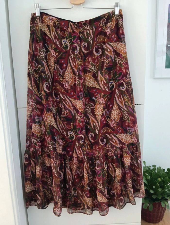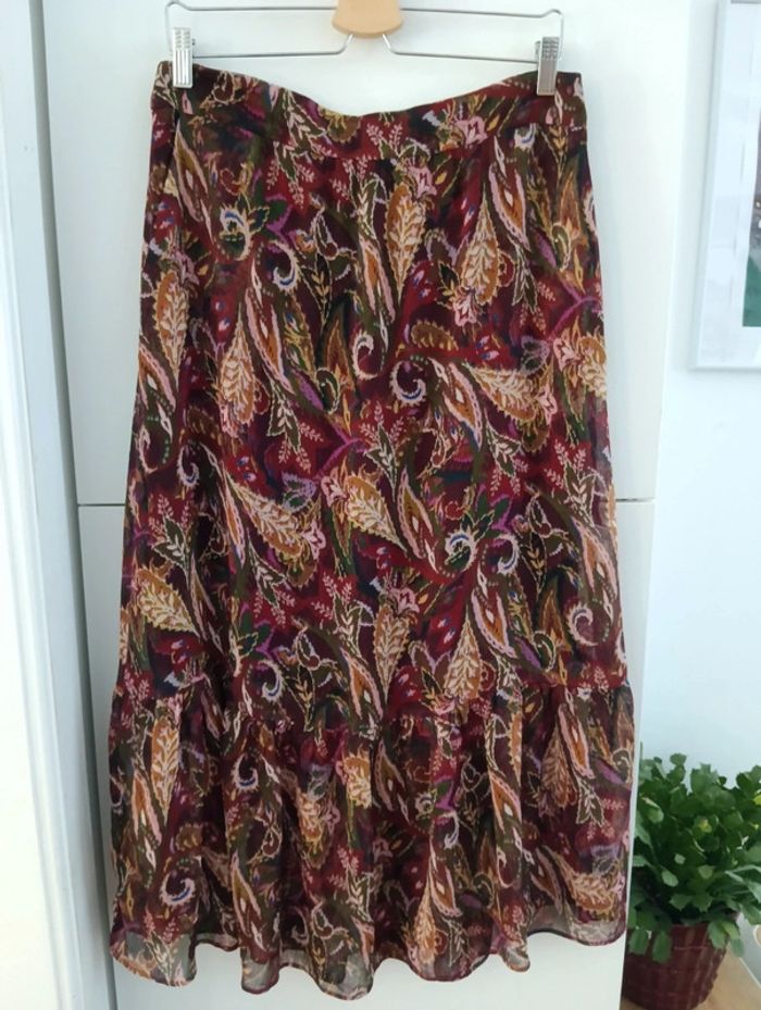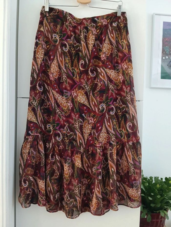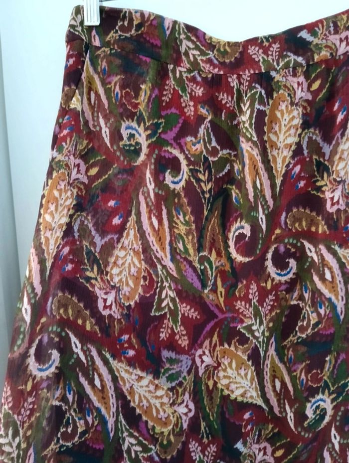 Jupe vintage multicolore longueur midi Fermeture au dos, Modèle cantique. Doublée jusqu'au genou.