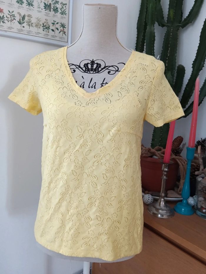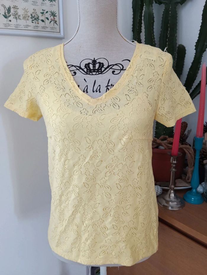 Top jaune Naf Naf joli dos boutonné effet dentelle - photo numéro 1