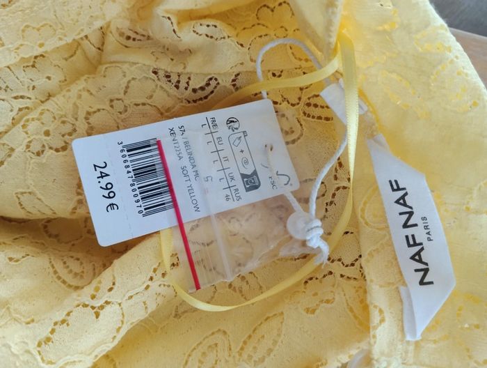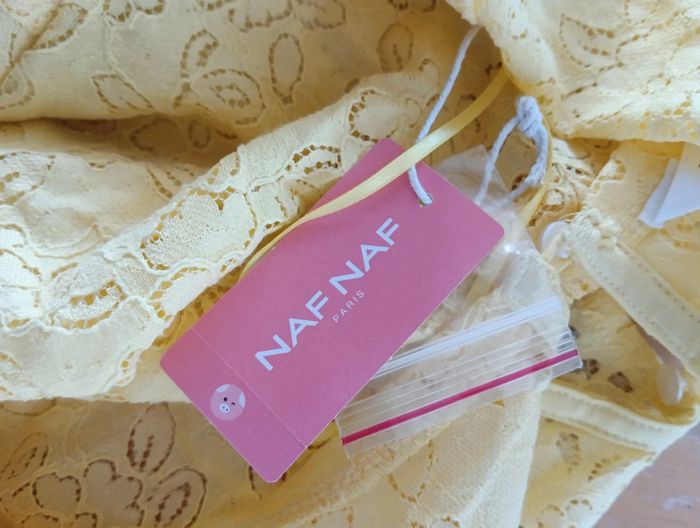 Top jaune Naf Naf taille S joli dos boutonné effet dentelle Neuf avec étiquette