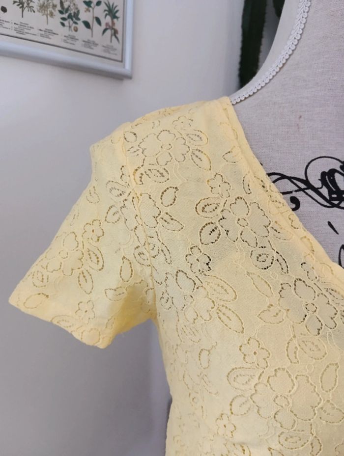 Top jaune Naf Naf joli dos boutonné effet dentelle - photo numéro 7