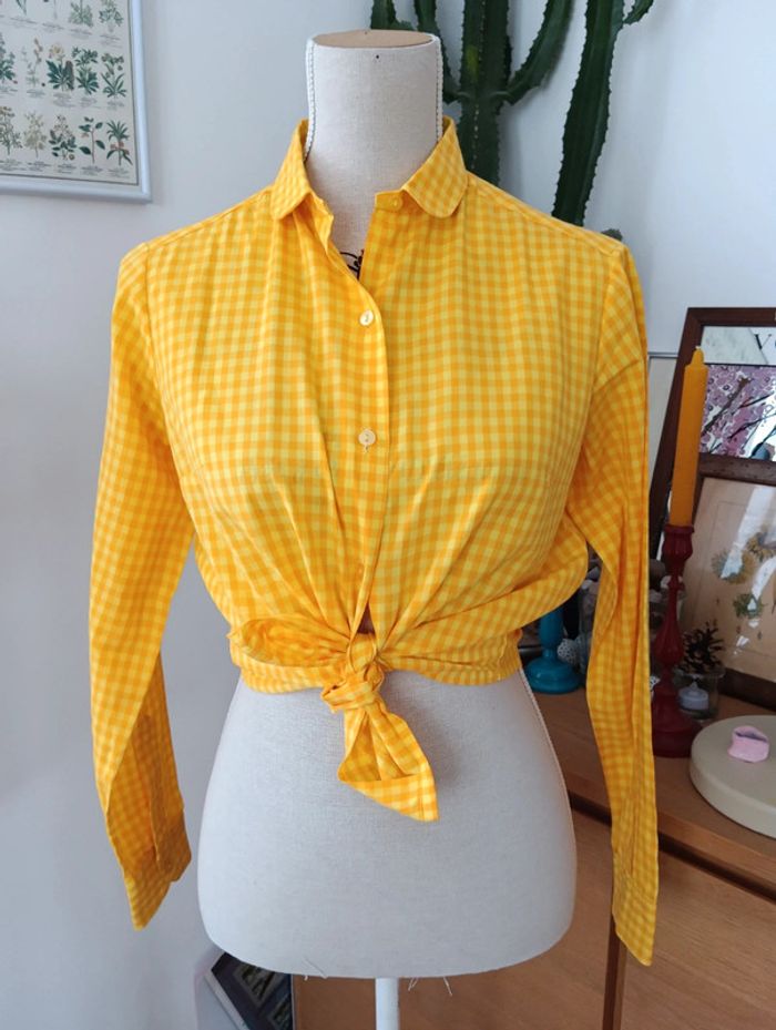 Chemise vintage à carreaux jaune orange taille 36 - photo numéro 2