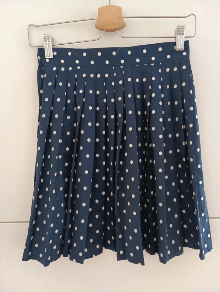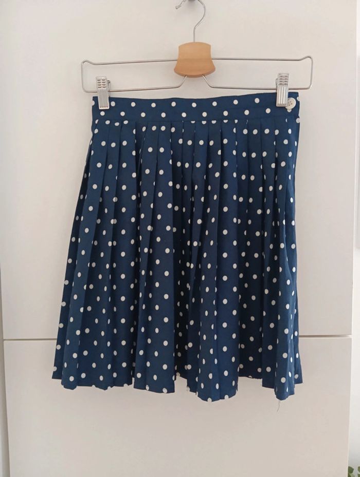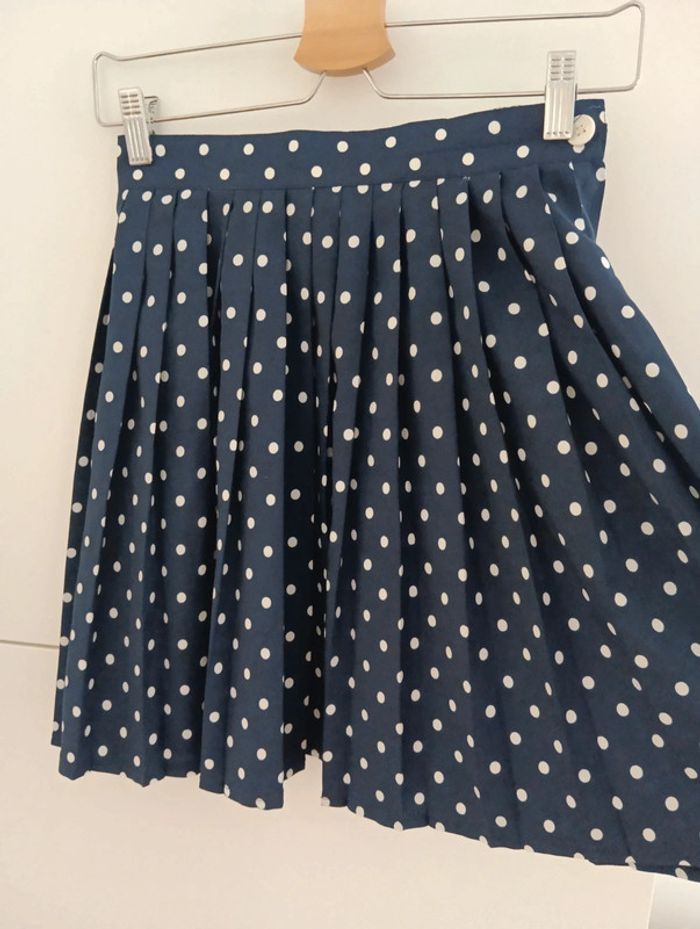 Jupe vintage plissée marine pois blancs - photo numéro 1