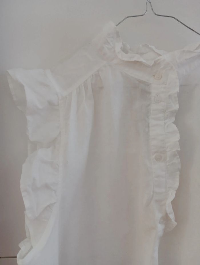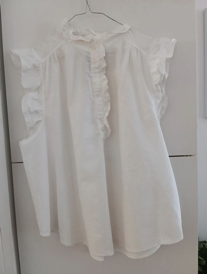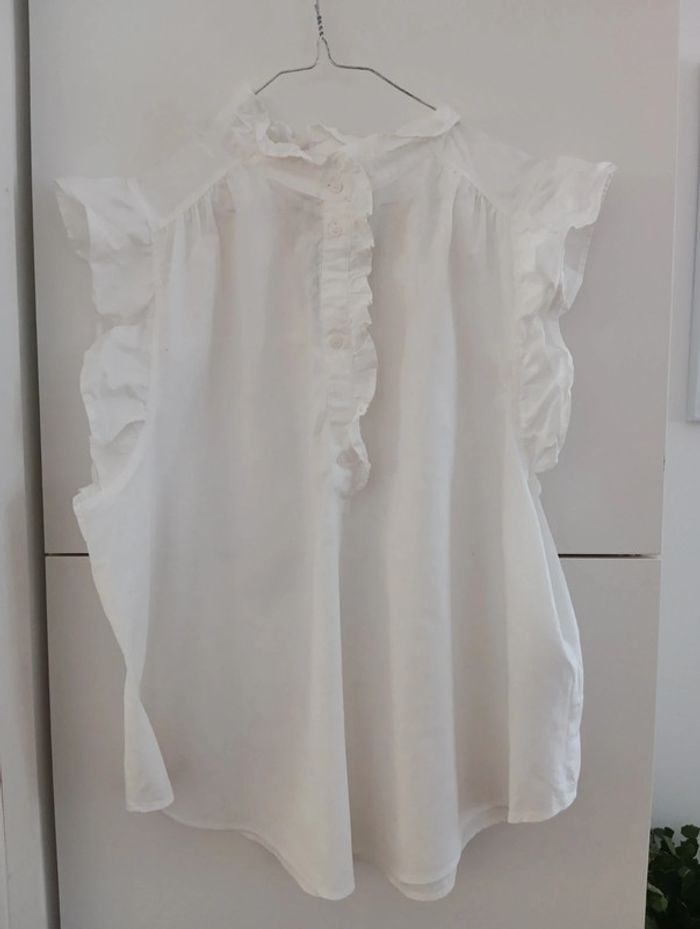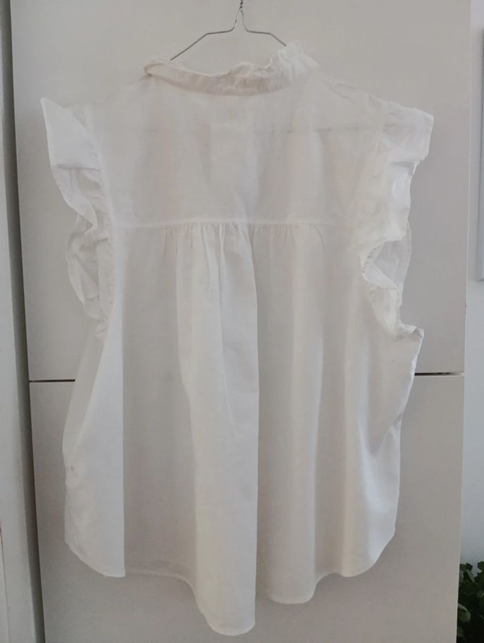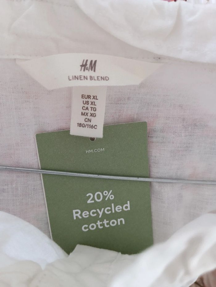 Blouse blanche H&M linen Blend taille XL Neuve Manches volantée, col et boutonnière volantées 52% lin 48% coton