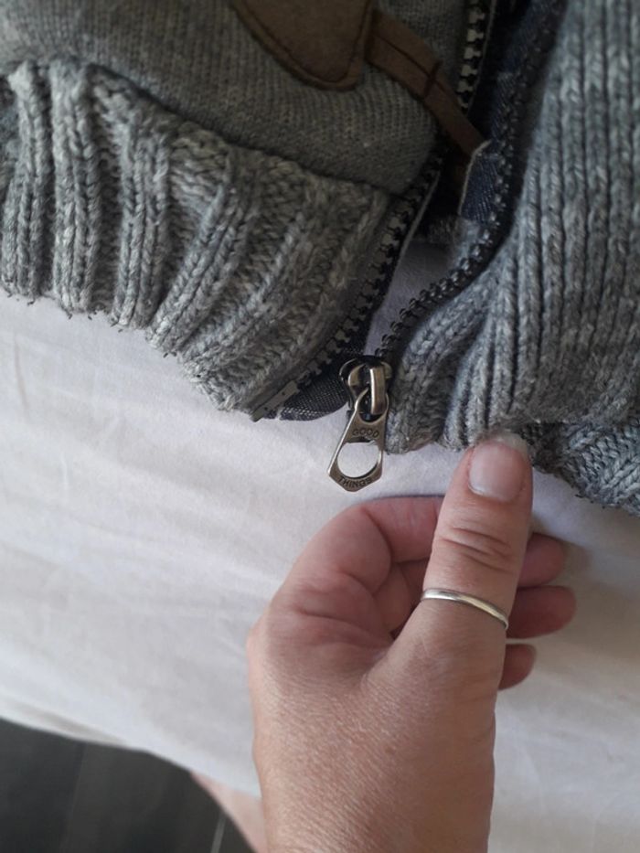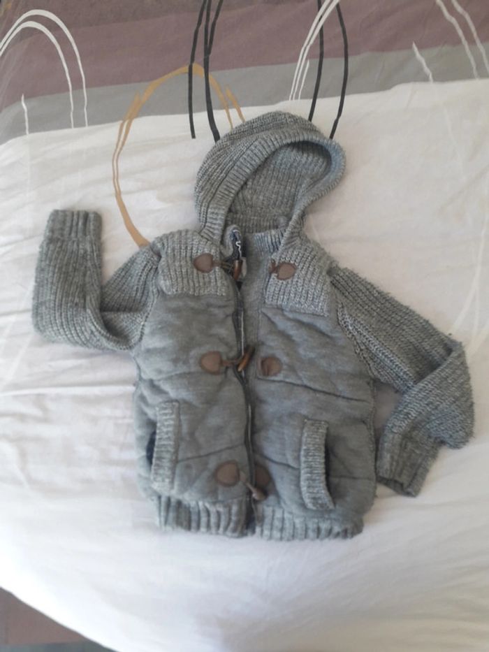 En bon état Fermeture éclair cassée, ferme par 3 attaches Très chaud 7-8ans