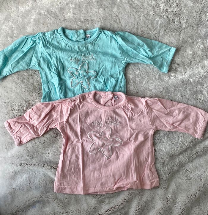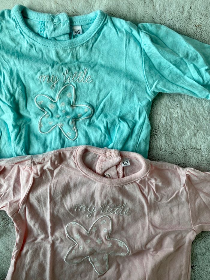 Lot de 2 t-shirts ML 3 mois 1 turquoise en 56cm 1 rose en 62cm JE SUIS DESOLÉE car rien n’est repassé 😰 et c’est assez froissé car rangé sous vide... J’espère m’en occuper quand je serai en congé maternité 🤣 Cliquer ci-dessous pour voir tout mon dressing sur CETTE taille uniquement : #3mois_cindydidi