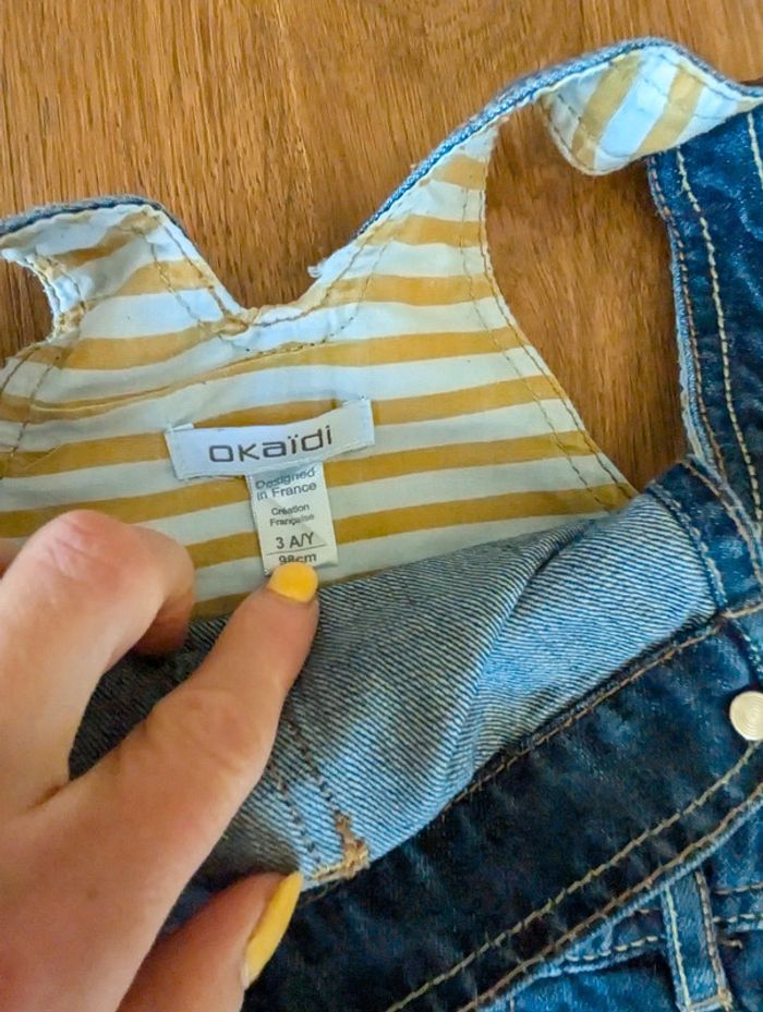Robe en jean type salopette, marque Okaïdi, taille 3 ans, en parfait état.