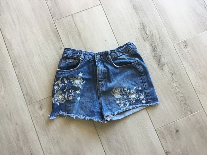 Short en jean avec broderies blanches Très bon état Taille 12 ans Maison non-fumeur Envoi rapide et soigné