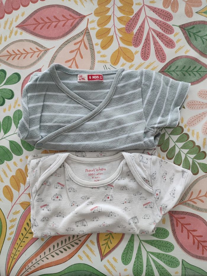 Lot de 2 bodies manches courtes 6 mois DPAM et Monoprix Bout'chou Bon état