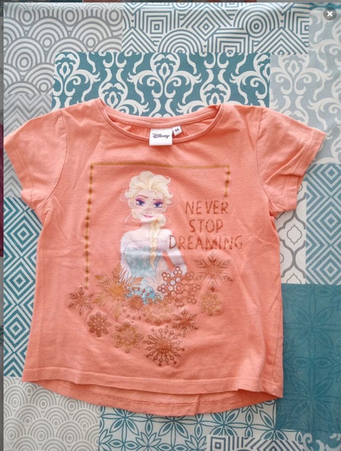 T-shirt fille manches courtes été Disney reine des neiges 4 ans Bon état - une petite partie du dessin partie ( voir photo )