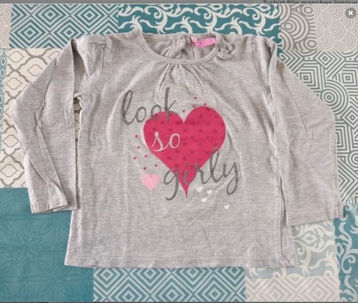 T-shirt fille manches longues Motif coeur 3 ans Gémo