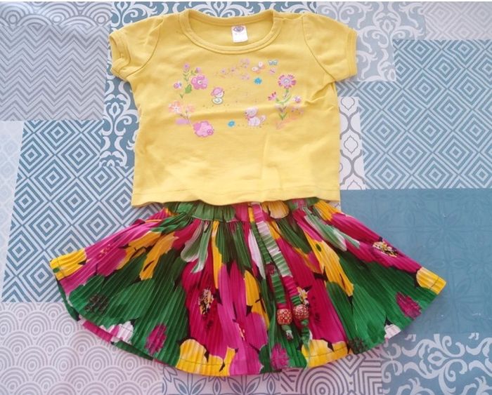 Ensemble coloré bébé t-shirt + jupe plissée fleurie Printemps été 12 mois Très bon état