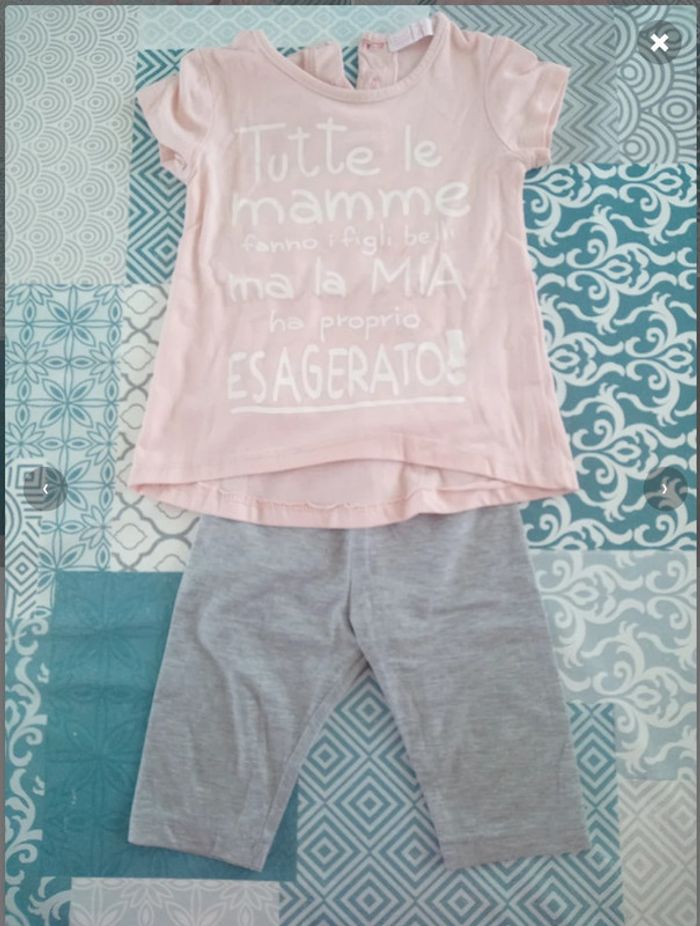 Ensemble bébé T-shirt + legging 12 mois Bon état, petite tâche ( voir photo )