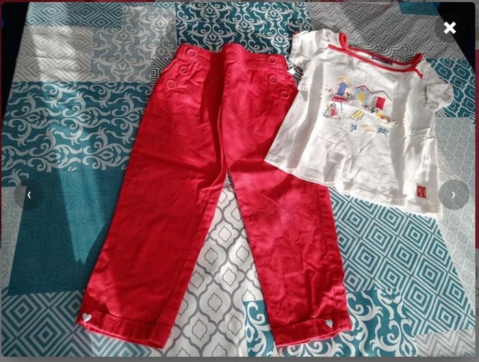 Ensemble pantalon + t-shirt manches courtes fille 3 ans Sergent major Quelques petites traces noires sur le pantalon (voir photo)