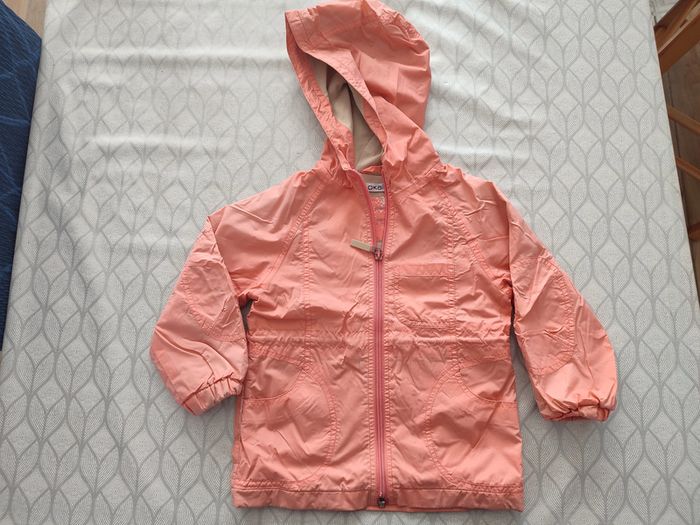 Manteau léger imperméable fille à capuche 2 ans Okaïdi Quelques traces d'usure dont une trace de feutre (voir photo)
