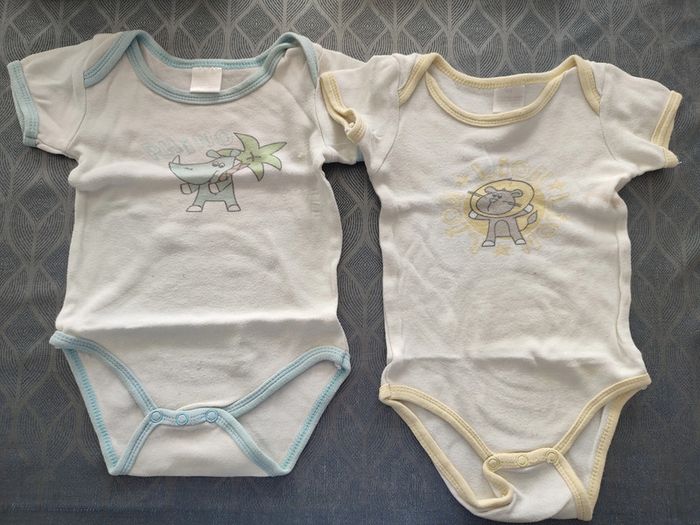 Lot de 2 bodies manches courtes 9 mois Bon état - le jaune est taché par endroit