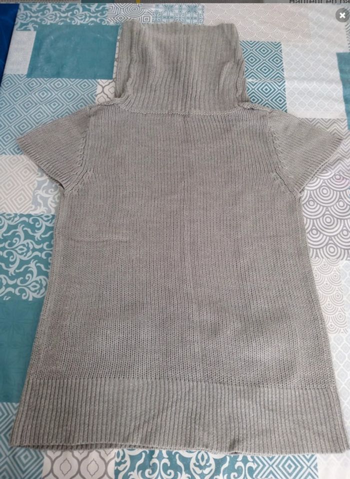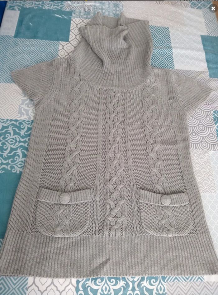 Gros pull manches courtes femme Grosse maille Taille L Très bon état Hauteur en partant de l'épaule : 67 cm In extenso