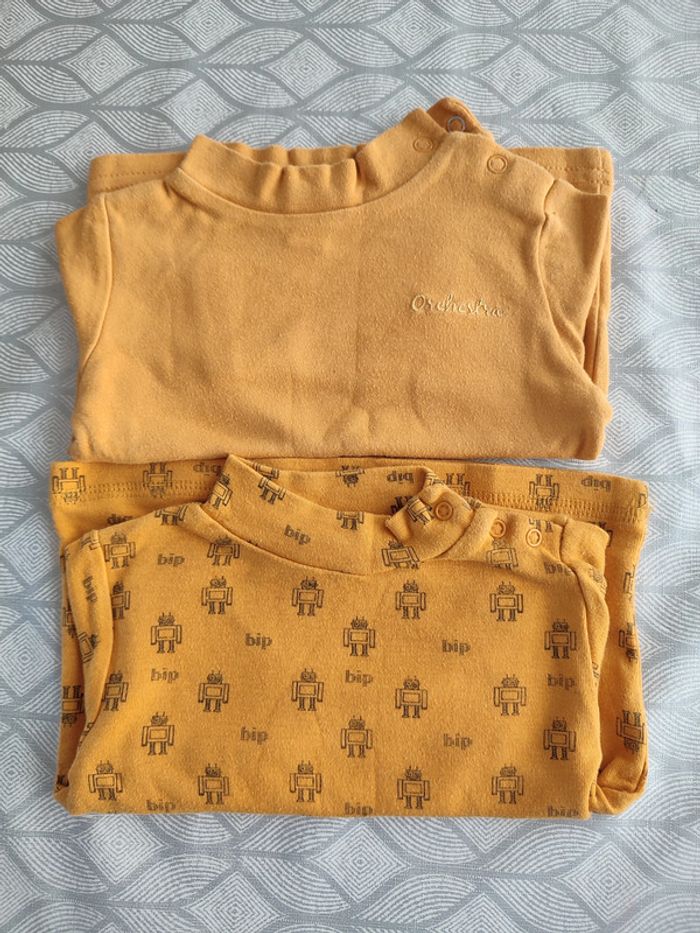Lot de 2 sous pulls / col roulés 6 mois Orchestra Très bon état hormis un tout petit trou dû à l'étiquette sur l'un d'eux au niveau de l'épaule (voir photo)