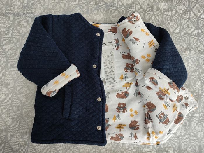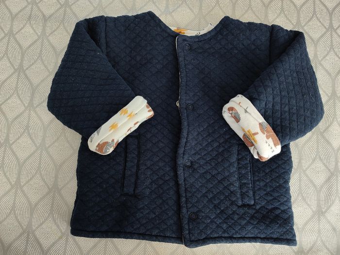 Gilet épais / veste bébé réversible avec boutons pressions 6 mois Gémo Très bon état - quelques toutes petites bouloches