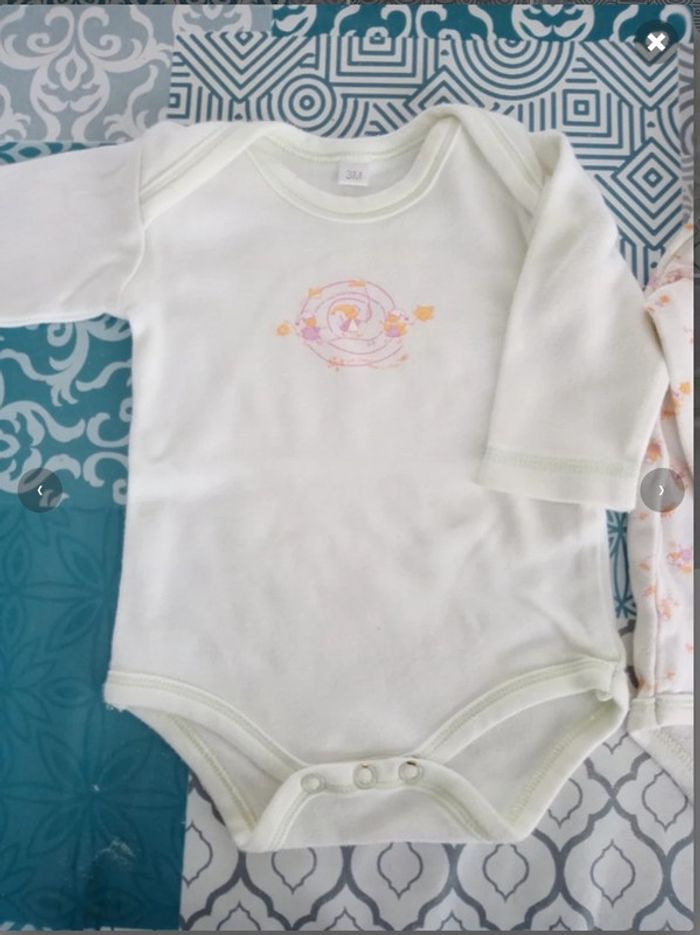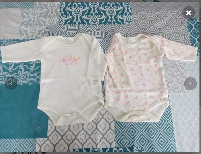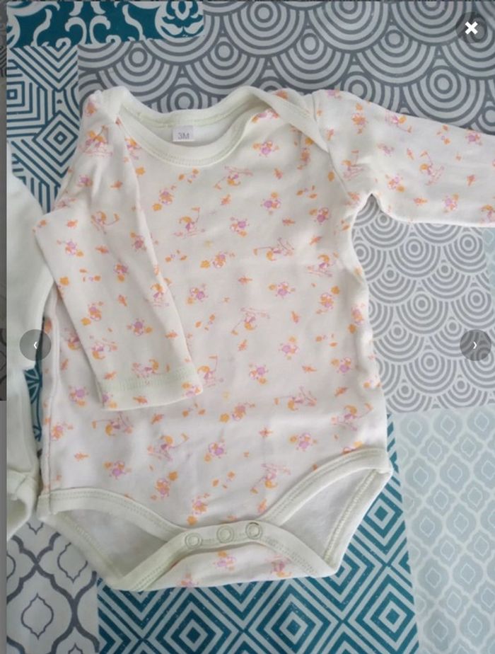 Lot de 2 bodies fille manches longues Taille 3 mois Très bon état hormis la couleur des pressions (voir photos)