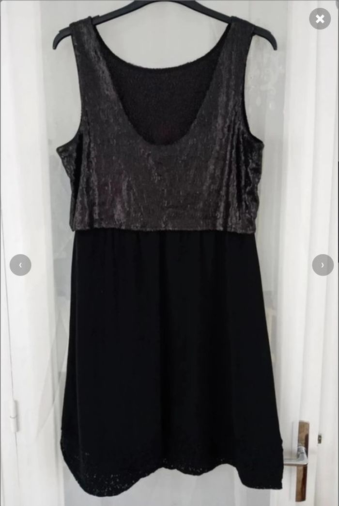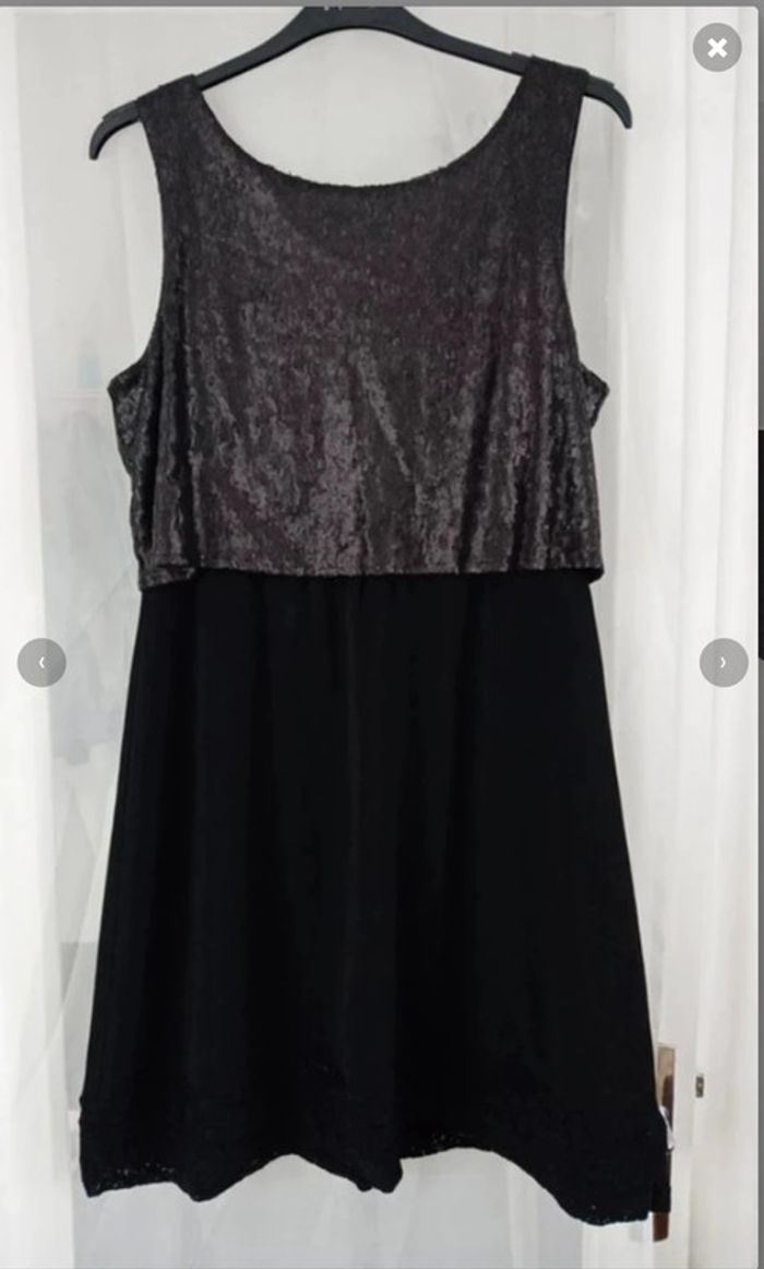Robe de soirée - fête habillée noire sans manche, à sequins et dentelle, col rond légèrement décolleté dans le dos Camaïeu Portée 1 fois seulement Taille 44
