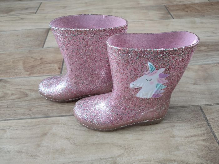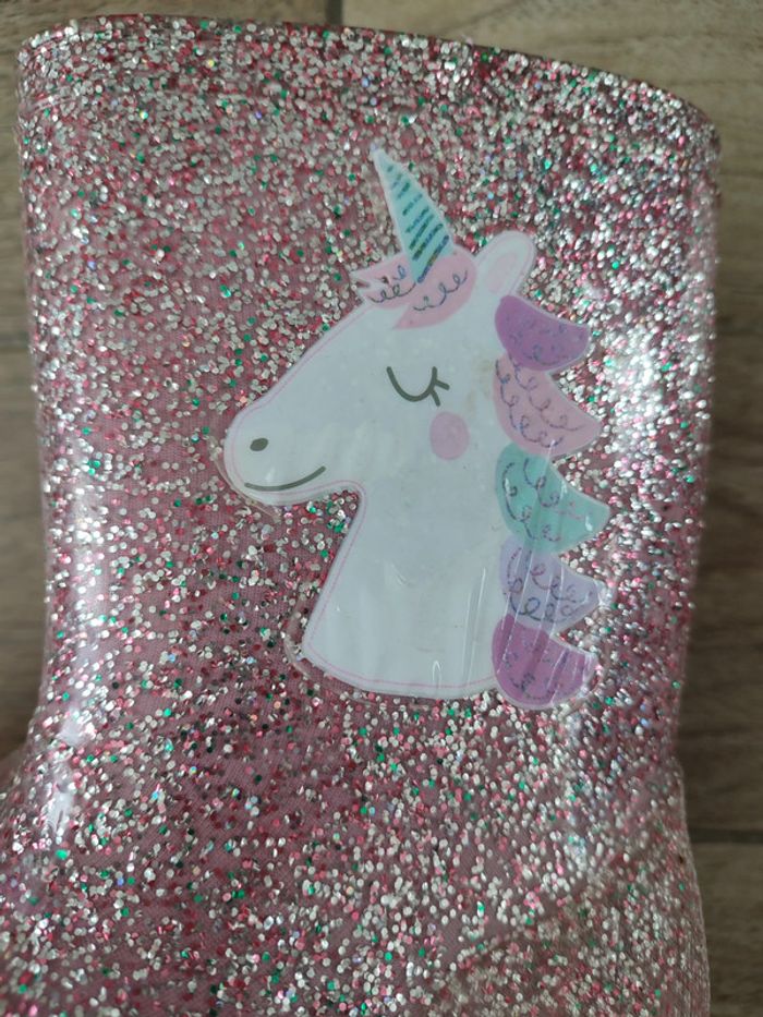 Bottes de pluie à paillettes Motif licorne Pointure 34 Très bon état - juste les licornes qui gondolent un peu