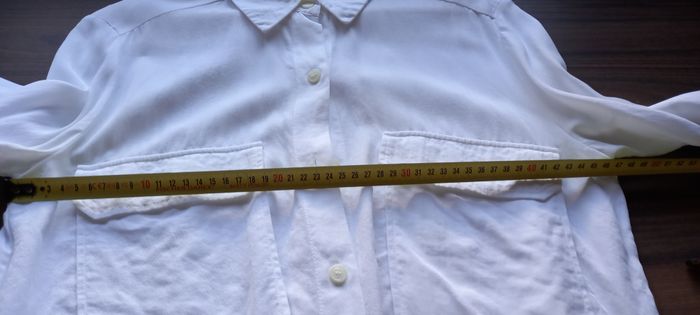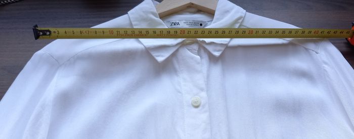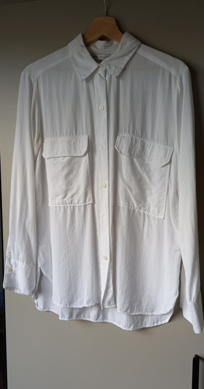 Chemise blanche Zara Manches longues Forme ample 2 grandes poches poitrine Coton Longueur 60 cm Largeur épaules 40 cm Largeur aisselles 47 cm Taille S Très peu porté #T36_imoddeco