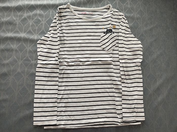 T-shirt manches longues marinière Motif chat licorne 8 ans Gémo Comme neuf, porté 2 fois