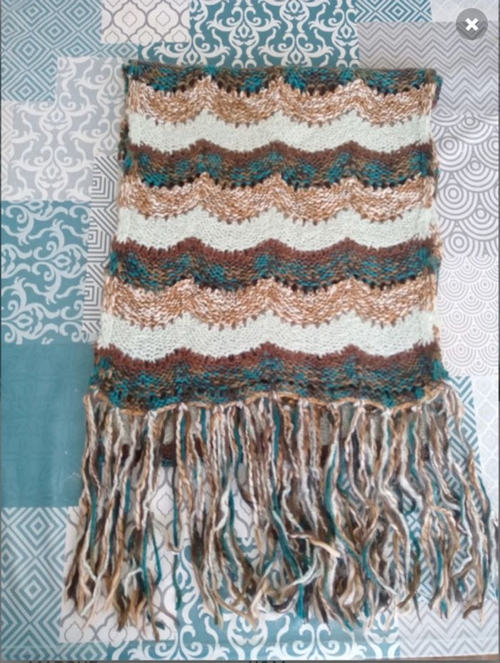 Écharpe H&M 70% acrylique 15% laine 5% alpaga 5% coton 3% polyester 1% polyamide 1% elasthanne Portée 1 ou 2 fois seulement, comme neuve