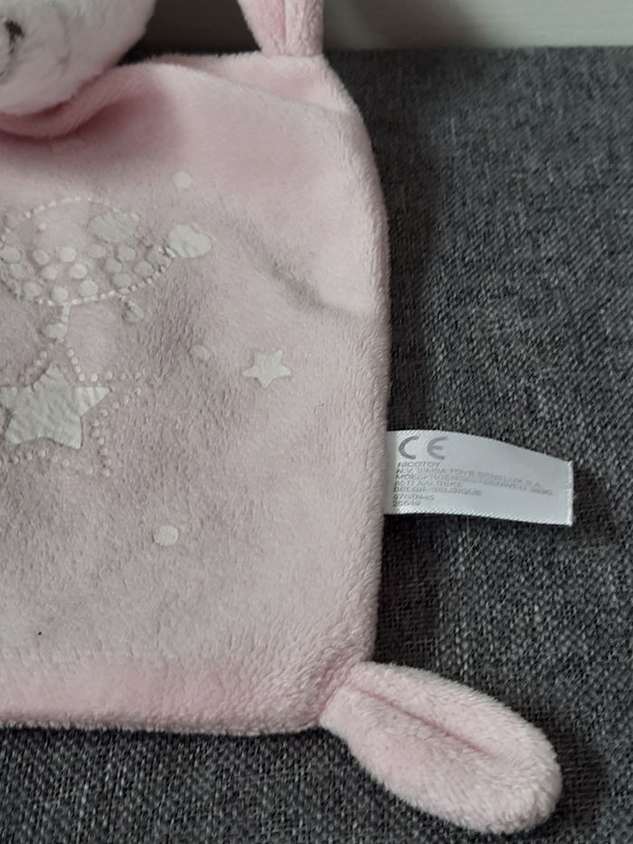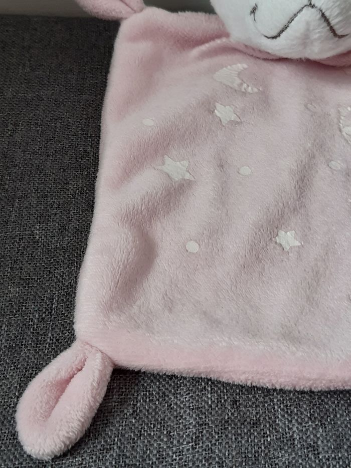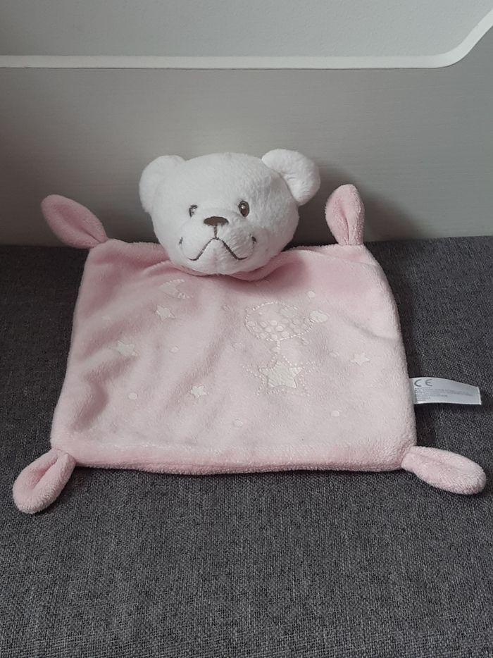 Peluche / doudou Nicotoy Doudou plat Ourson 🧸 blanc et rose claire motifs phosphorescent. D'autres photos possible sur demande Merci de privilégier les envois par Mondial Relay