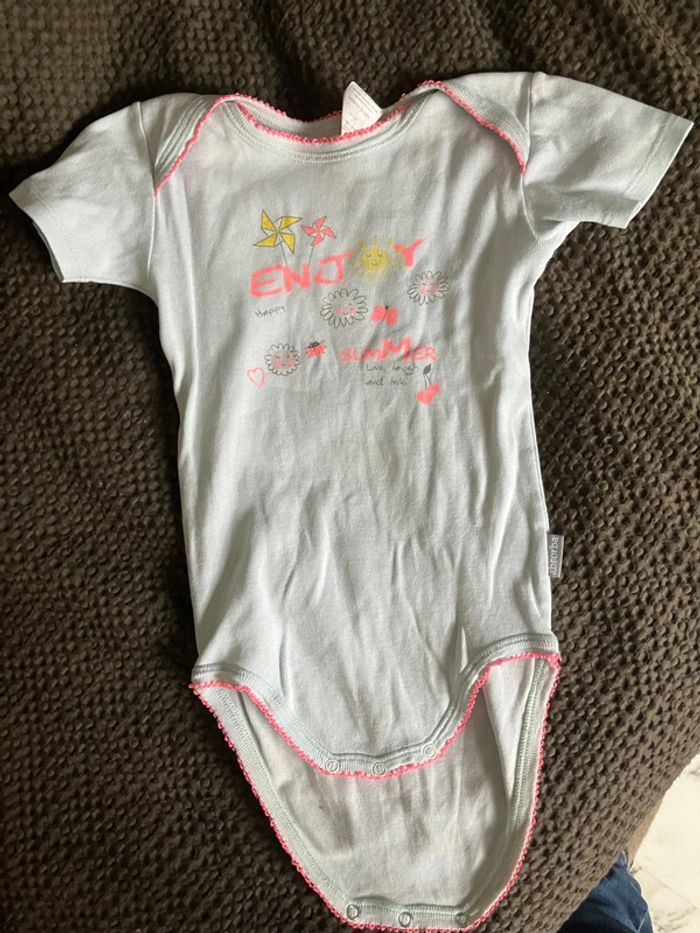 Body manches courtes Bleu clair. Enjoy summer Coton Légèrement taché au niveau de la couche. Voir photos Idéal en change à la crèche ou chez nounou Absorba 24 mois #lollys13_24mois #lollys13_absorba