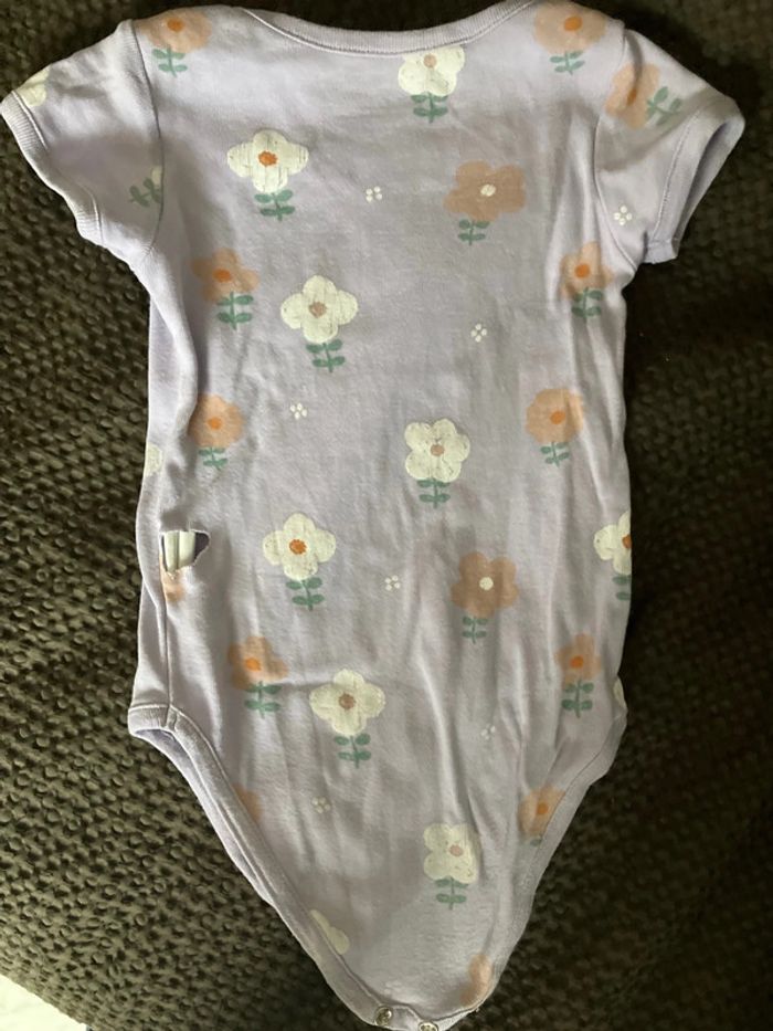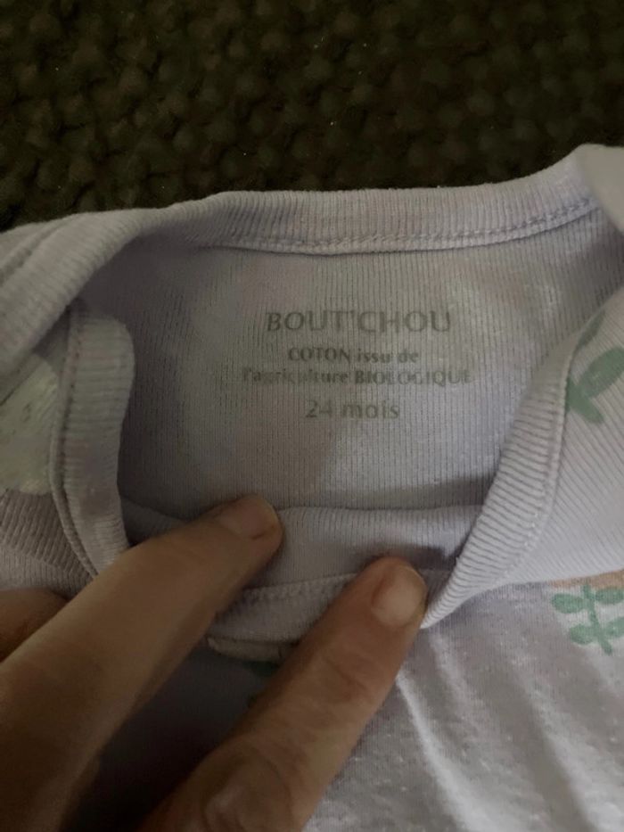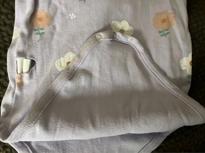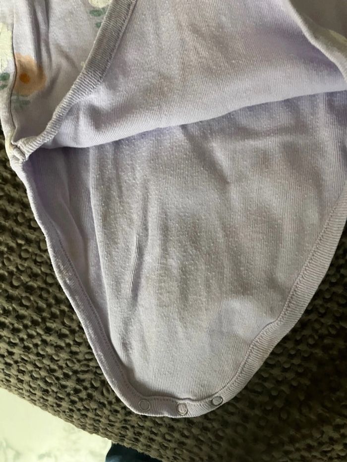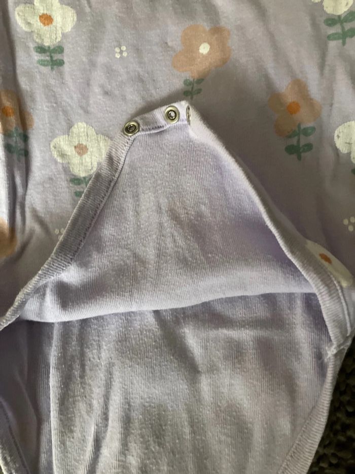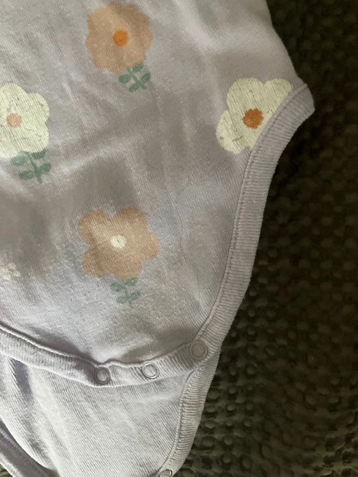 Body manches courtes Violet clair avec grosses fleurs 24 mois Boutchou Très peu porté. Laissé à la crèche en vêtements de change Trou au niveau du côté. Je l’ai pas vu quand j’ai acheté le lot des 3 bodys. Je m’en suis aperçue quand je l’ai lavé (au moment de l’étendre). En don pour les lots importants #lollys13_24mois #lollys13_boutchou