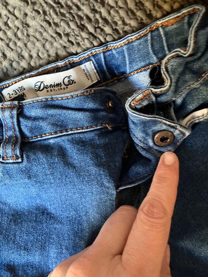 Jeans slim 2-3 ans Bouton pression. Taille ajustable par lien de serrage. Voir photos C&A #lollys13_24mois #lollys13_3ans