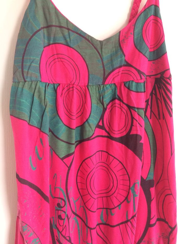Robe / tunique. Idéal sortie de plage Couleur rose et vert 65% coton, 30% polyester et 5% elastane Lavage à 30 A peine portée