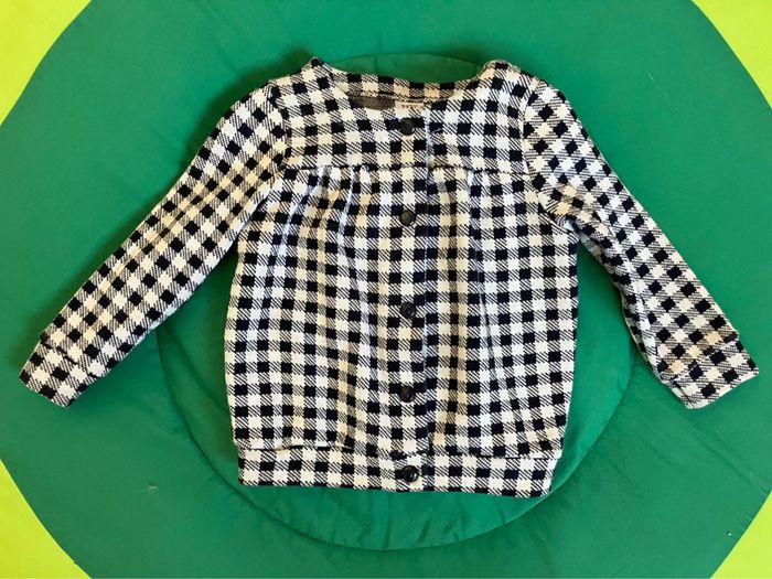 Très beau gilet ou petite veste Idéal demi saison ou été à la place d’un manteau Carreaux vichy Noir et blanc Petit bateau 18 mois #lollys13_18mois #lollys13_petitbateau