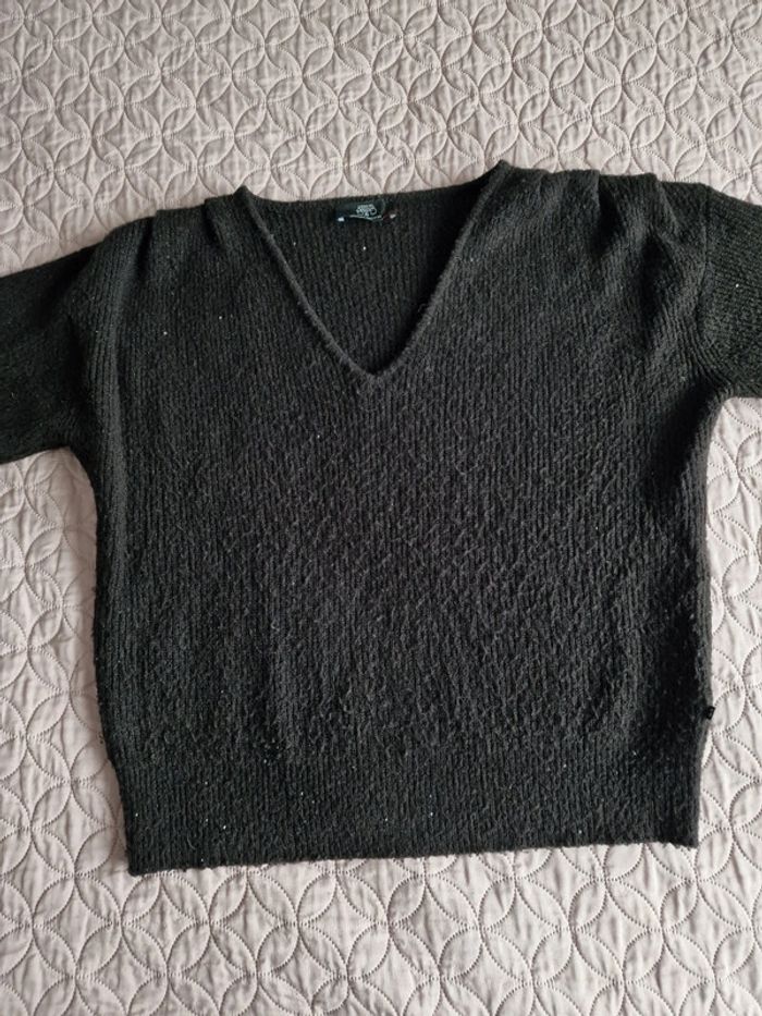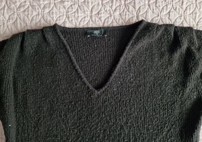 Pull col V noir s soit 36 LE TEMPS DES CERISES Bouloché mais se rattrape facilement si vous avez une déboulocheuse