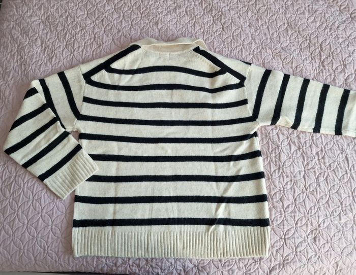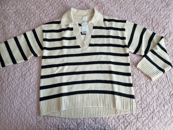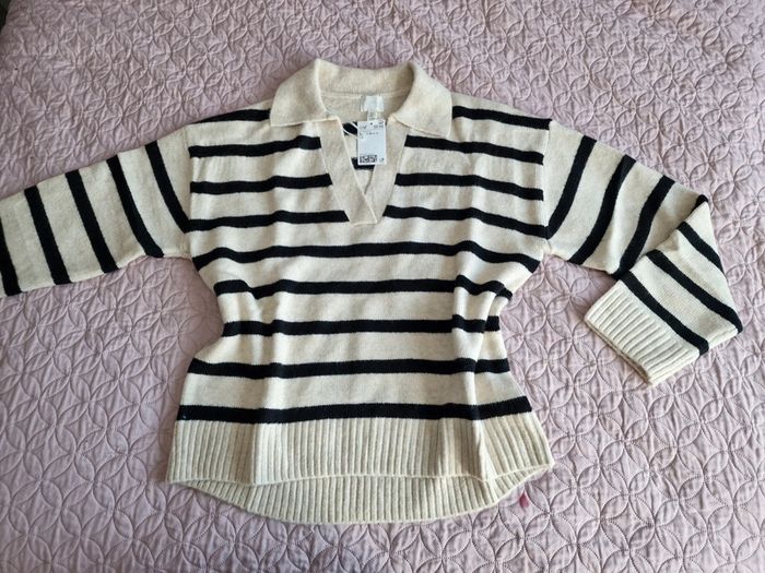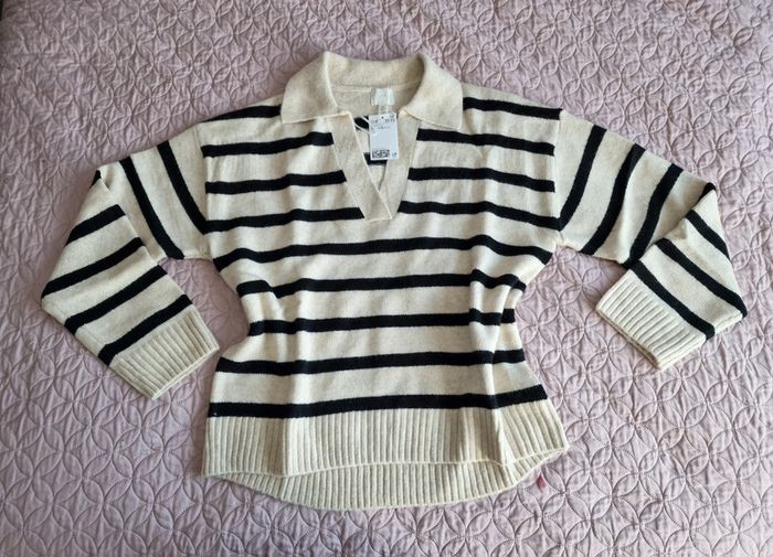Pull col V neuf Étiqueté H ET M Style marin crème noir