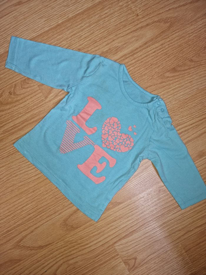 Bonjour je vends ce haut bleu clair, imprimé rose corail. Manches longues. Taille 3 mois. Très bon état