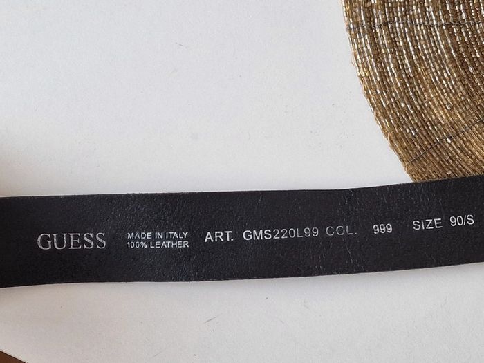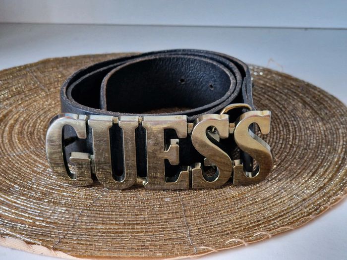 Ceinture en cuir Femme Taille 90 s GUESS 110 cm avec boucle 99 cm sans boucle Largeur 4 cm Très bon état hormis la boucle voir photo
