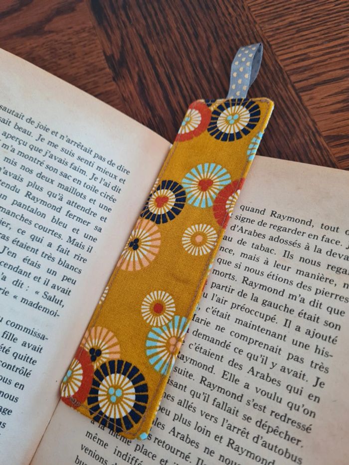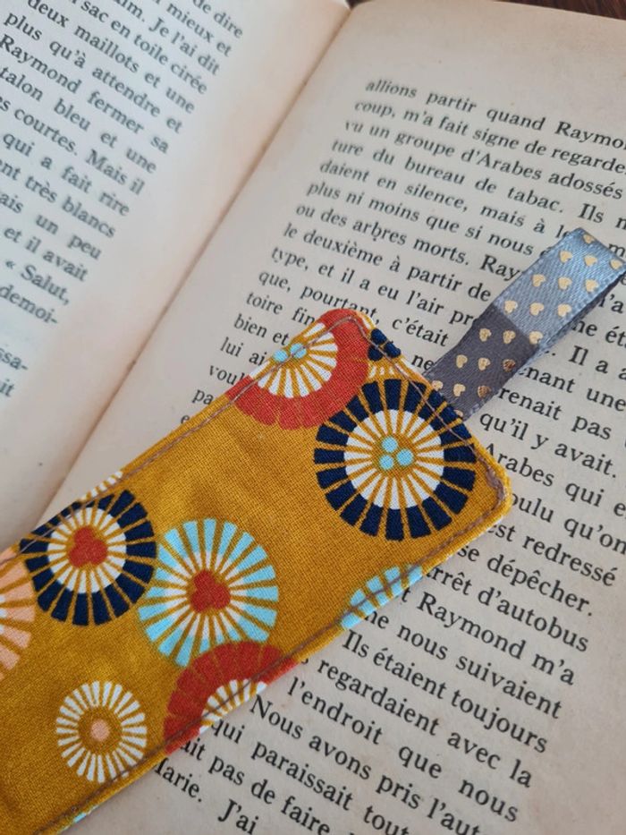Marque page en tissu avec ruban. Thermocollant entre les deux couches de tissu coton. Dimension: 15,5 cm x 5 cm #tyjalel29400_marquepage