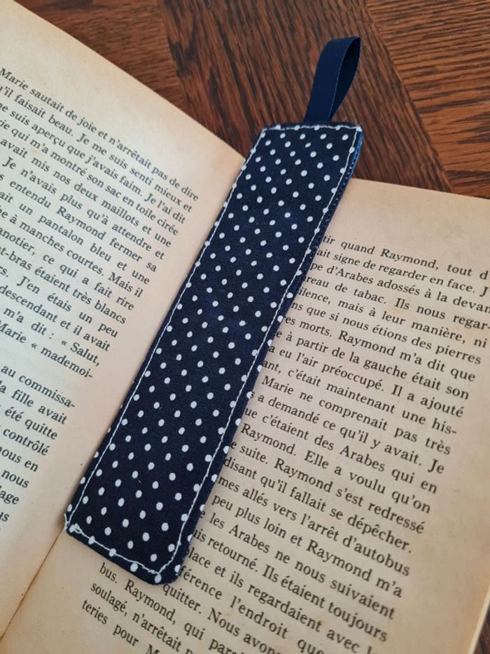 Marque page en tissu avec ruban. Thermocollant entre les deux couches de tissu coton. Dimension: 15,5 cm x 5 cm #tyjalel29400_marquepage