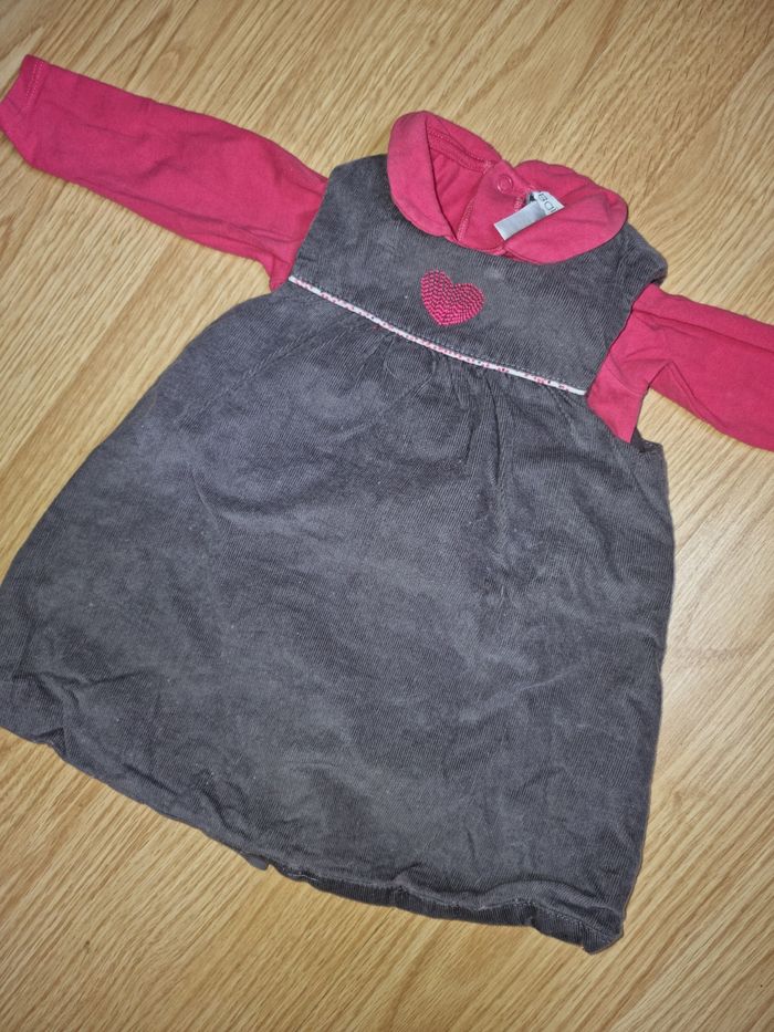 Bonjour, je vends cet ensemble, maillot rose à longues manches et sa robe boule gris marron. Taille 6 mois de chez obaibi