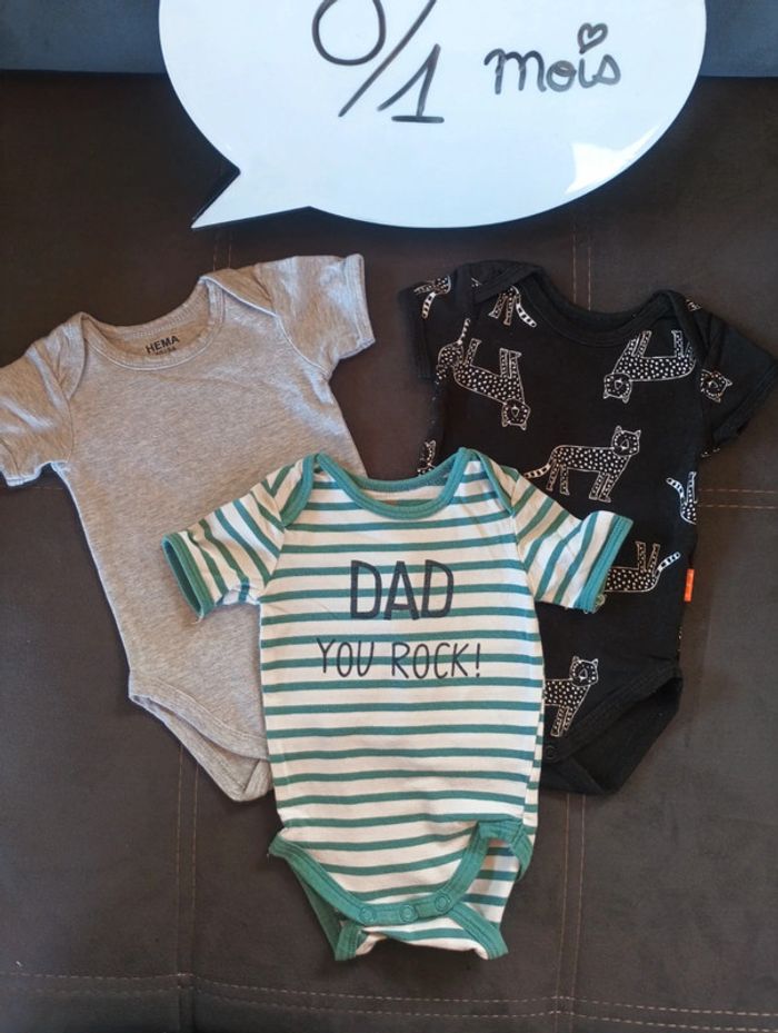 Lot de 3 bodies manches courtes Mixte 0/1 mois Dad you rock ! Léopard Hema - photo numéro 1