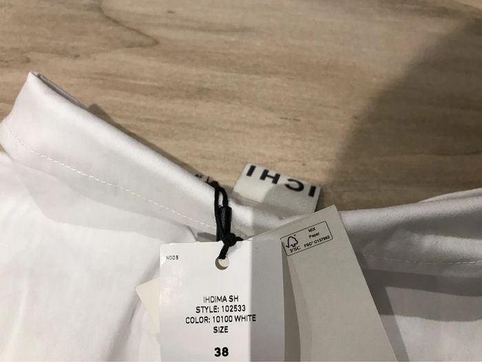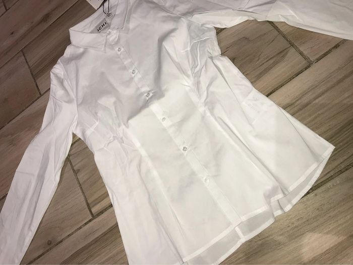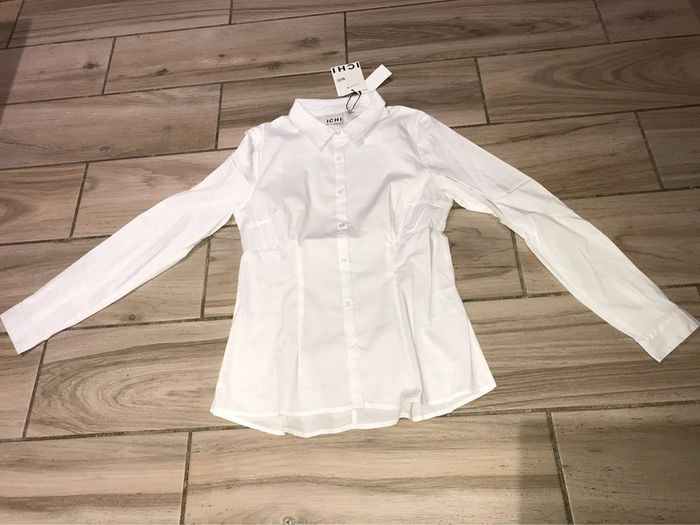 Chemise à boutons col revers manches longues blanche ichi taille 38 neuf avec étiquette