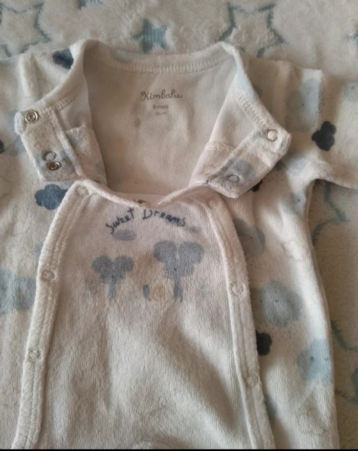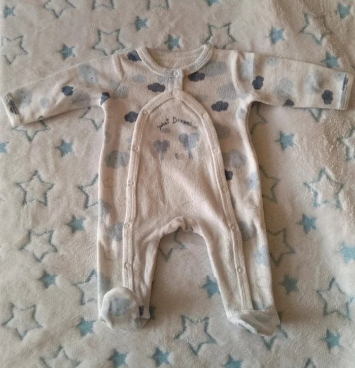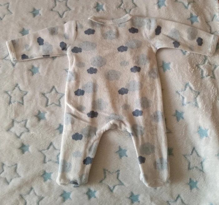 Pyjama bébé garçon velours kimbaloo. Coton, polyester. 0 mois 50 cm, motif petit nuage. Porté quelques fois.