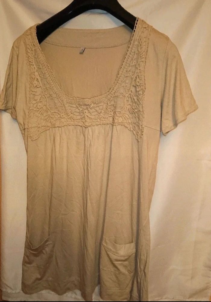 Tee-shirt beige avec 2 poches sur le devant Taille 4 correspond à une taille 44.