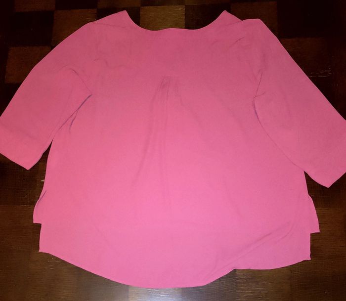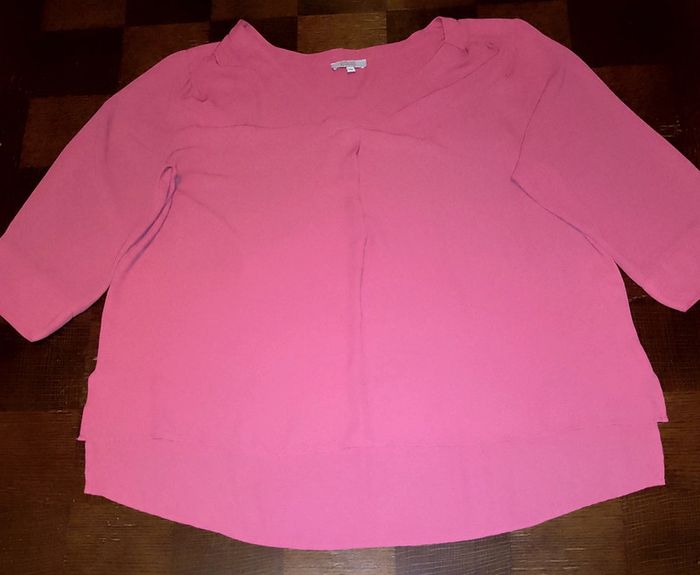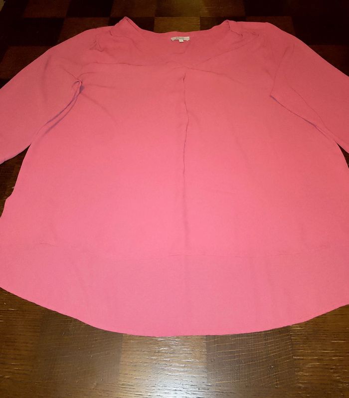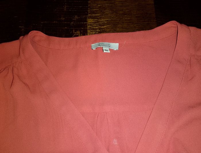 Blouse manches 3/4 couleur corail. Modavista taille 50. 100% polyester. Peu porté