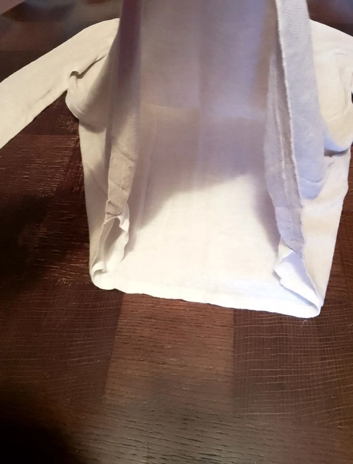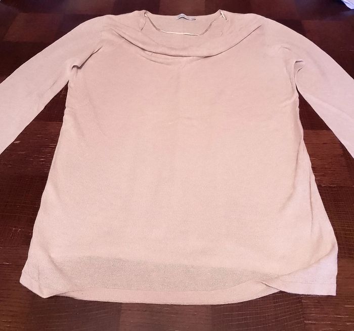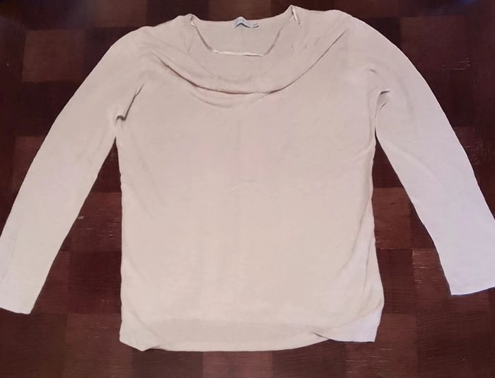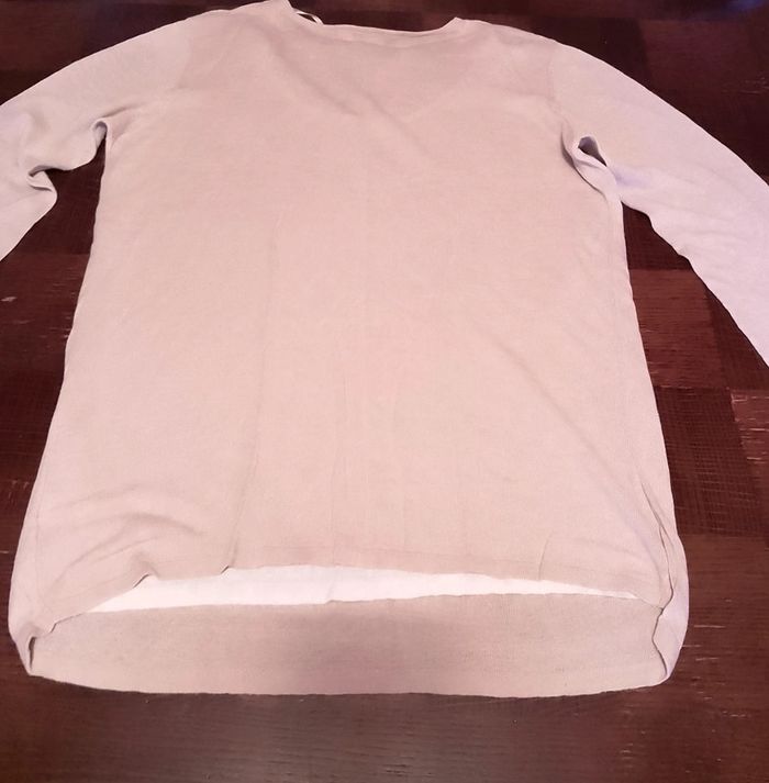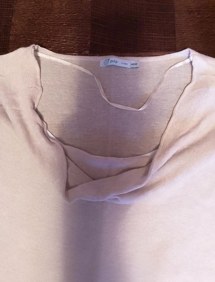 Tee-shirt en lin et viscose beige avec doublure dessous blanc col plongeant Gémo taille 46/48. Peu porté.