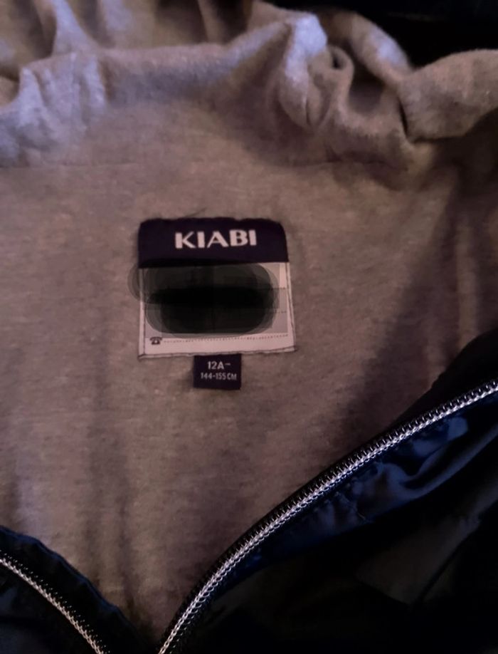 Blouson coupe vent garçon Kiabi 12 ans. Porté souvent mais en bon état pas de trous pas de tâches. Il y a juste le prénom et nom de mon fils qui ne sait pas effacer.