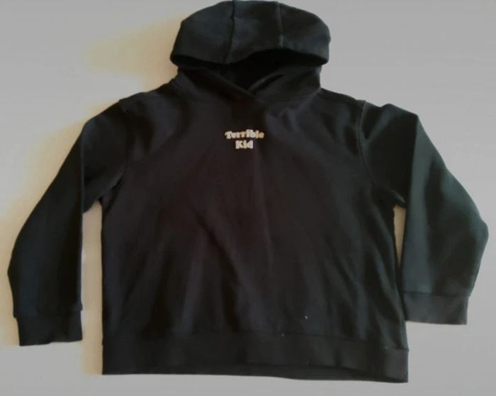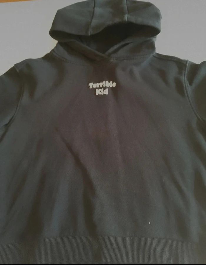 Pull a capuche garçon noir terrible kid Kiabi 10 ans.