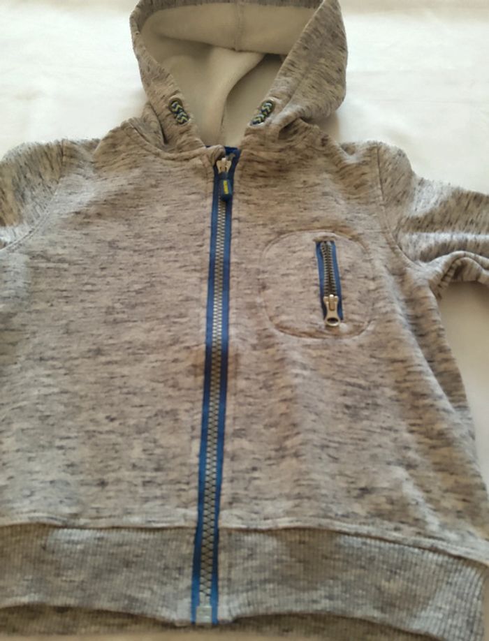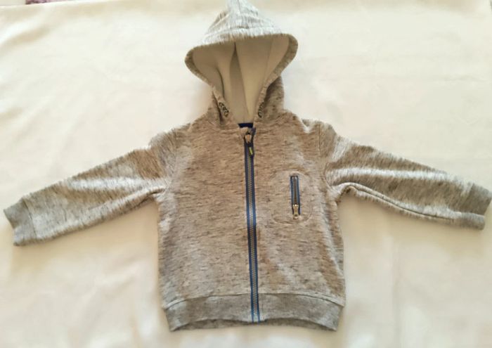 Gilet a capuche fermeture éclair gris liberto 3 ans. Fausse poche sur la poitrine.
